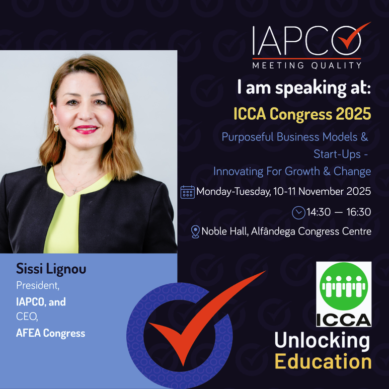 • Leadership perspective: On Monday and Tuesday, IAPCO President Sissi Lignou contributes to the Purposeful Business Models & Start-ups track—alongside Professor Hwabong Lee (Hallym University, South Korea; ICCAUni member) and Mário Ferreira (President, Alfândega do Porto / Mário Ferreira)—exploring how purpose informs resilient models, innovation, and long-term value.