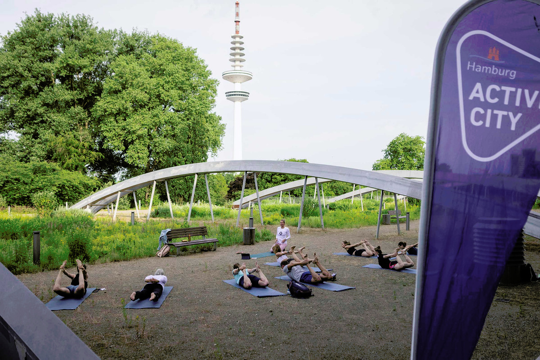 - Live participation sessions with Hamburg sports clubs: boxing with world champion Dilar Kisikyol, football drills, yoga sessions, and fencing workshops.